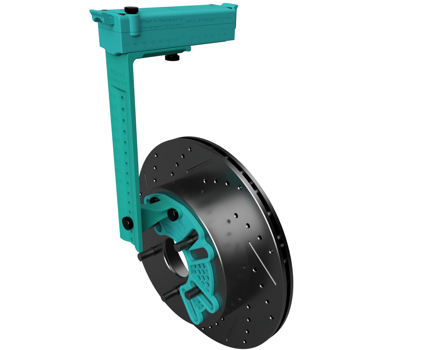 Place the Wheel Fitment Tool on the hub and move the offset slider to the position that achieves the desired fitment. Then, check the offset indicator to determine your new “effective offset.”